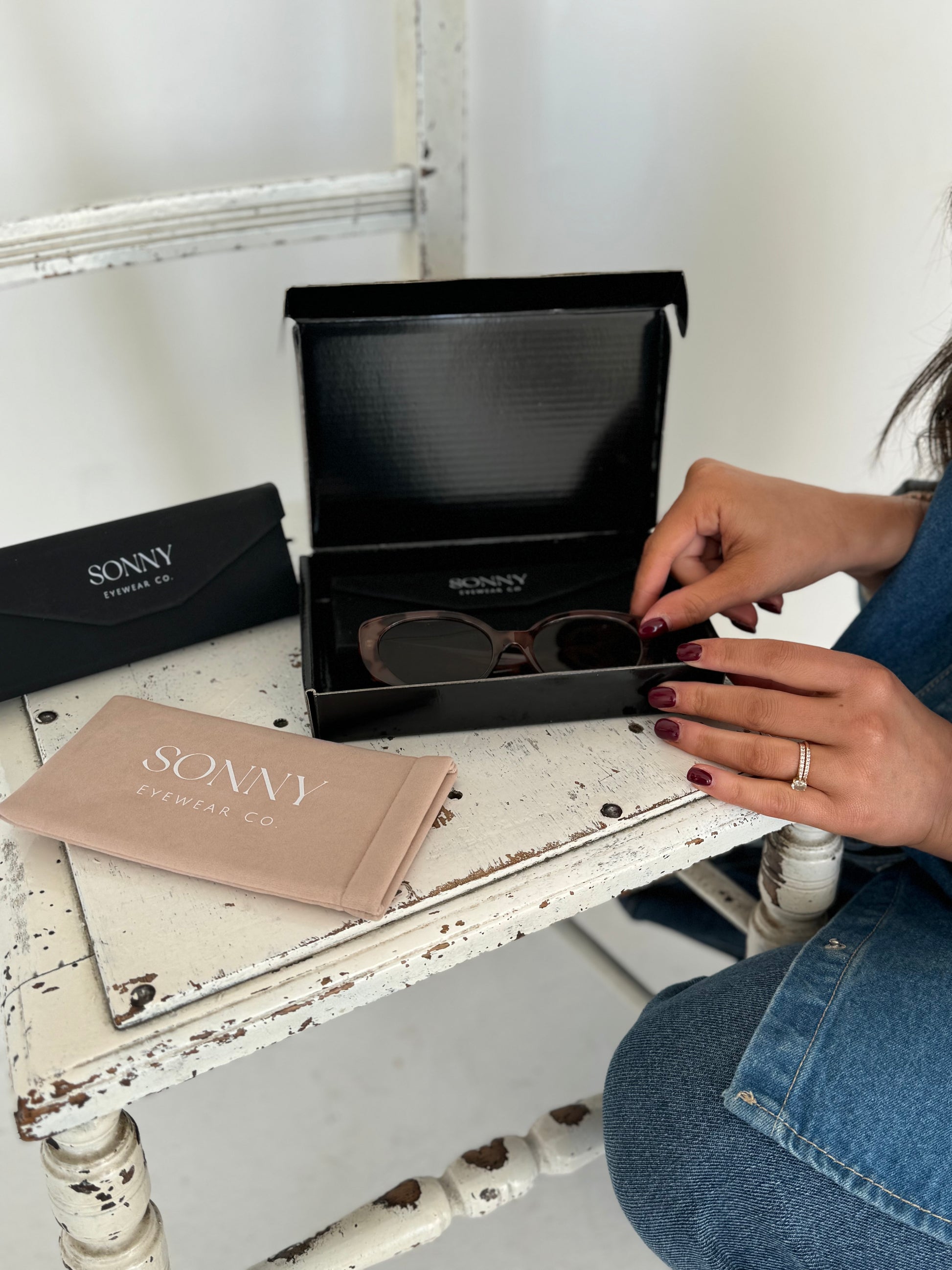 Our premium ‘Sand’ velvet pouches with a magnetic closing strip will keep your glasses protected and clean throughout your day to day.